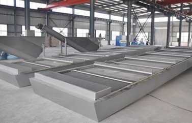 鏈板式回轉式格柵除污機為粗格柵,又稱雨水格柵、反撈式格柵,是一種用于清除水中較大固體懸浮物的大型粗格柵設備,本裝置可以連續自動清除液體中的固體懸浮物,設計合理、結構簡單、運轉安全、可靠、自動化程度高,可廣泛應用于城市污水處理、自來水廠取水口、雨水泵站、發電廠冷卻水取水口等大流量的水處理場所。設備機架結構參照了回轉式格柵除污機的優點,采用與眾不同的工作原理,即耙齒鏈在柵條前后作回轉運動,到耙齒運轉到柵條的迎水面時,即插入柵條縫隙中由下往上作清撈動作。耙齒鏈采用封閉式,不讓雜物侵入,使設備運轉更加平穩。設備安裝時整機吊裝,只需在集水井兩側的地坪上預埋兩塊鋼板,土建簡單節約,安裝維修方便。